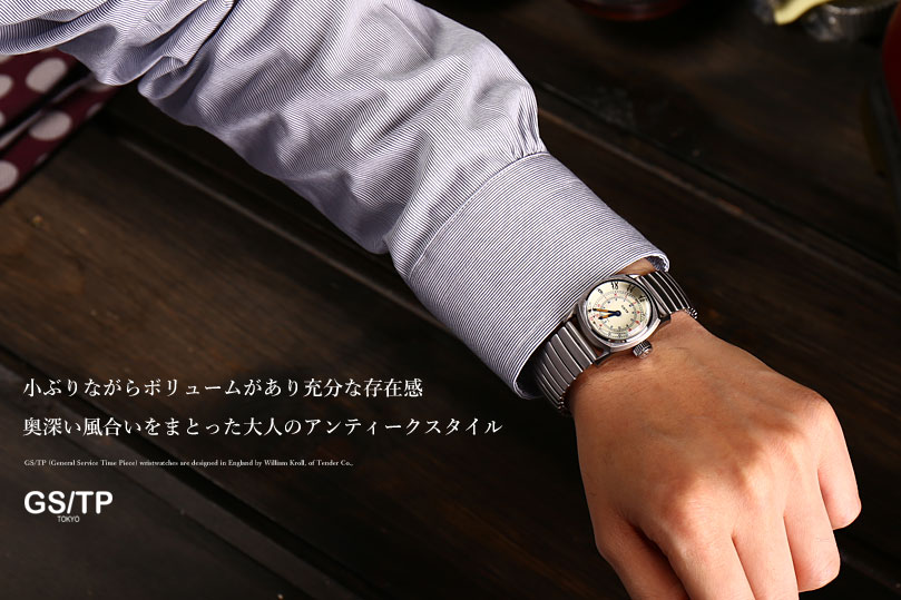 28mmの小口径フェイスは1930〜40年代によく見られたデザインで、クラシカルな印象。